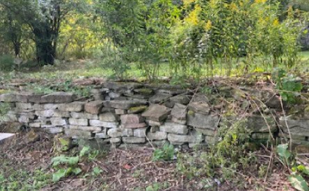 Scattered throughout our glamping campsite are stone foundation walls that were built more than 150 years ago. They are gorgeous features in our landscape and we are so grateful for them. And with this year’s especially dry summer and easy access to perfect building stones from the creek, it feels like the perfect time to blog about dry stone wall building.